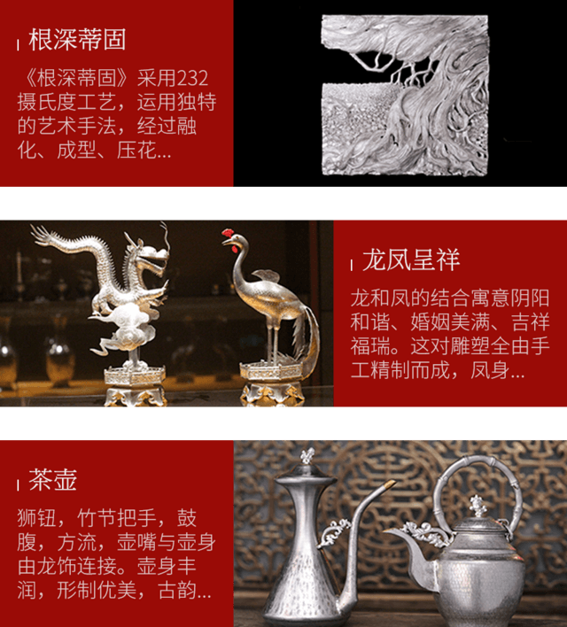 浙江荣盛达锡制品有限公司是国家级非遗项目(永康锡雕),浙江省非物质文化遗产生产性保护基地及宣传展示基地的单位。是保护、传承、教育、研究、开发锡雕文化、产品的企业。公司成立于2002年,注册资本518万元。是一家拥有自主知识产权,具有设计、研发、检测和制作锡制品能力的企业。公司建立了一整套以锡为原材料的非遗产品和现代工艺品的生产及技术问题的解决方案,为锡行业解决了诸多难题及制作方法。公司内部建有研发...